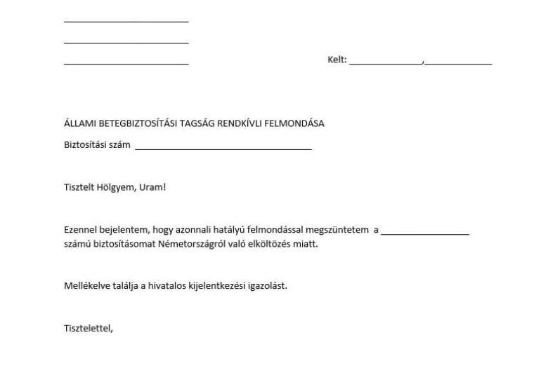 Betegbiztosítás felmondása hazaköltözéskor - Formanyomtatvány