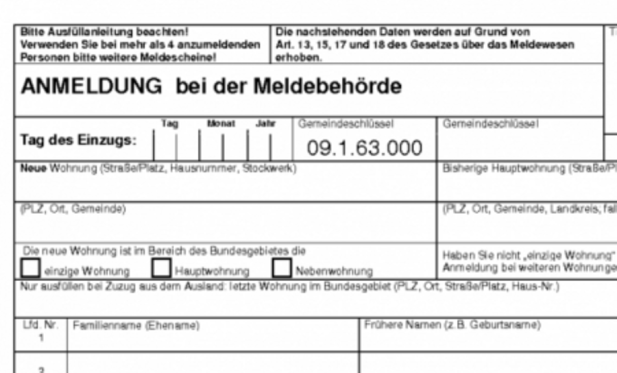 Bejelentkezés, Lakcím bejelentése Németországban, (Anmeldung)