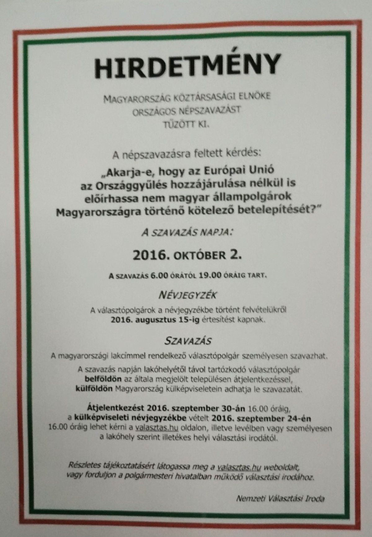 2016 október 2.-án a németországi magyarok is szavazhatnak a nem magyar állampolgárok magyarországra való kötelező betelepítéséről.