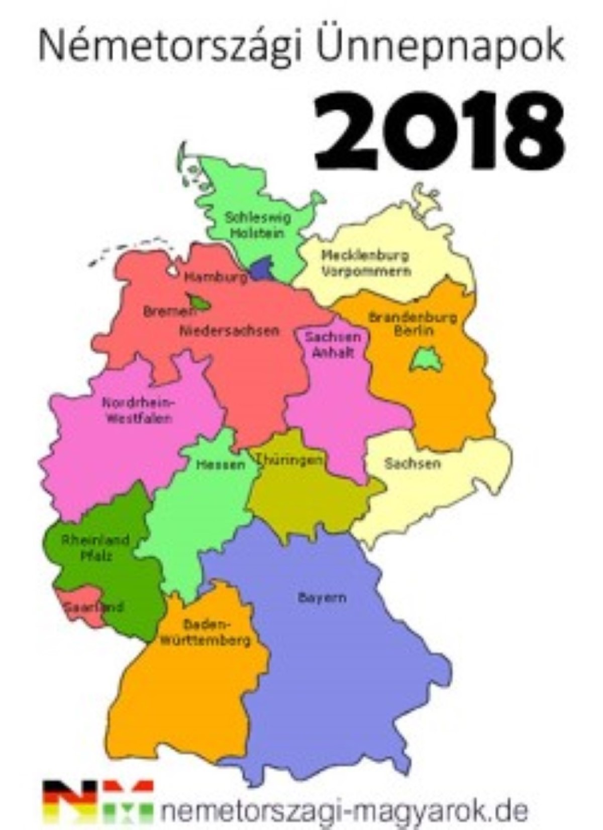 Munkaszüneti- / Ünnepnapok Németországban tartományonként, 2018 -ban