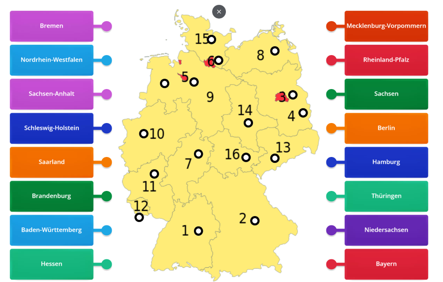 Németország föderációs alapon felépülő állam, ahol a közigazgatás alapját a tartományok (németül Bundesländer) jelentik. Nagyságuk, lakosságszámuk és népsűrűségük jelentősen eltér egymástól. Mielőtt rátérnénk a fő adatok ismertetésére, egy játékra invitálunk benneteket. Tudjátok, melyik tartomány hol helyezkedik el Németországon belül?