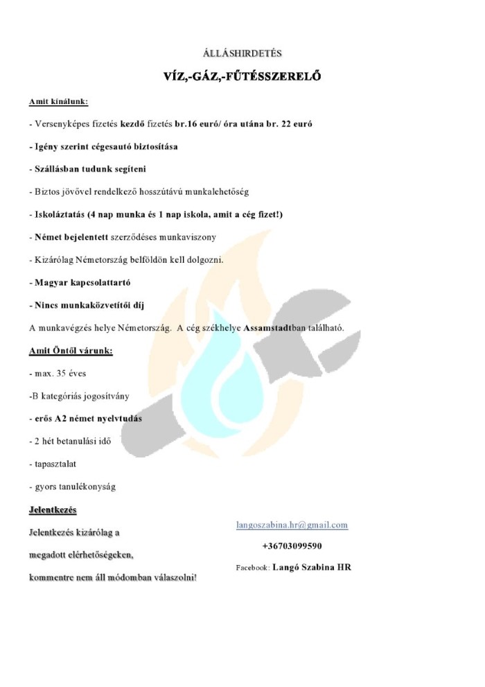 Tapasztalattal rendelkező szakembert keresünk, azonnali kezdésre. Kezdő br 16 eurós órabérrel, ami emelkedik, magyar kapcsolattartóval, szállásban segítünk!