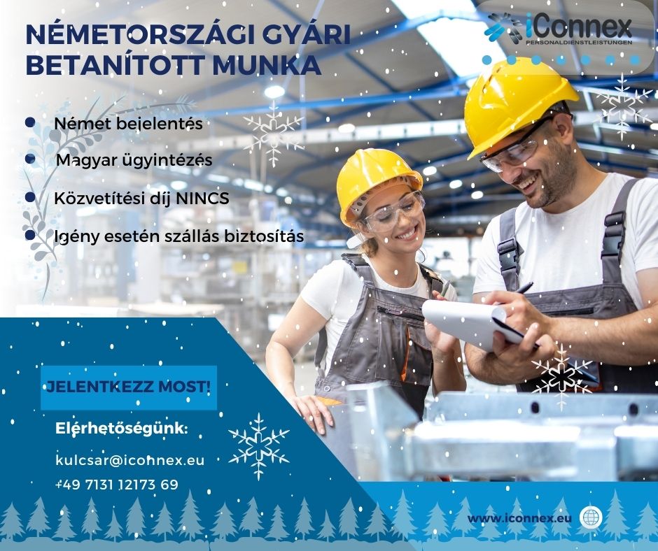 Ugyanitt gépkezelőket és raktári munkásokat is keresünk német nyelvtudással 13,50€-s bruttó órabérért, akár tapasztalat nélkül is.