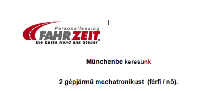 Münchenbe keresünk 2 gépjármű mechatronikust (férfi / nő).