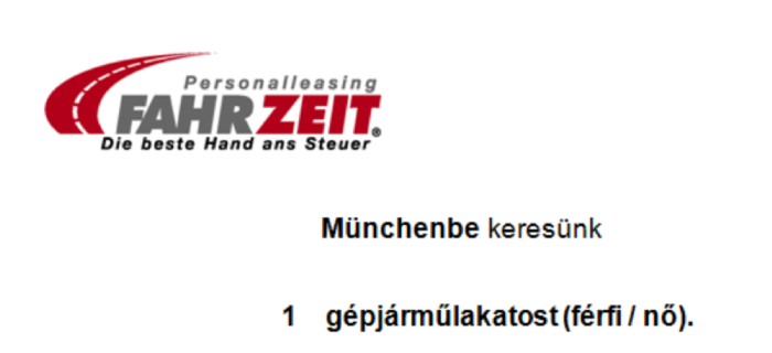 Kérjük, küldje el rövid önéletrajzát e-mailben (muenchen@fahr-zeit.de), vagy keressen meg telefonon, minden kérdésre szívesen válaszolok.