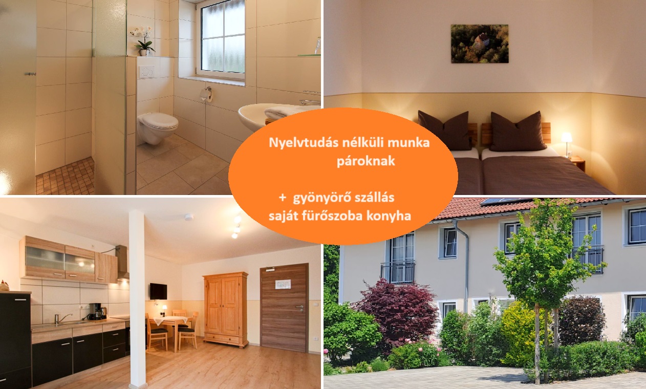 Pároknak NYELVTUDÁS nélküli munka - saját kis lakás fürdőszobával és konyhával! 2200 euró bruttó fizetéssel