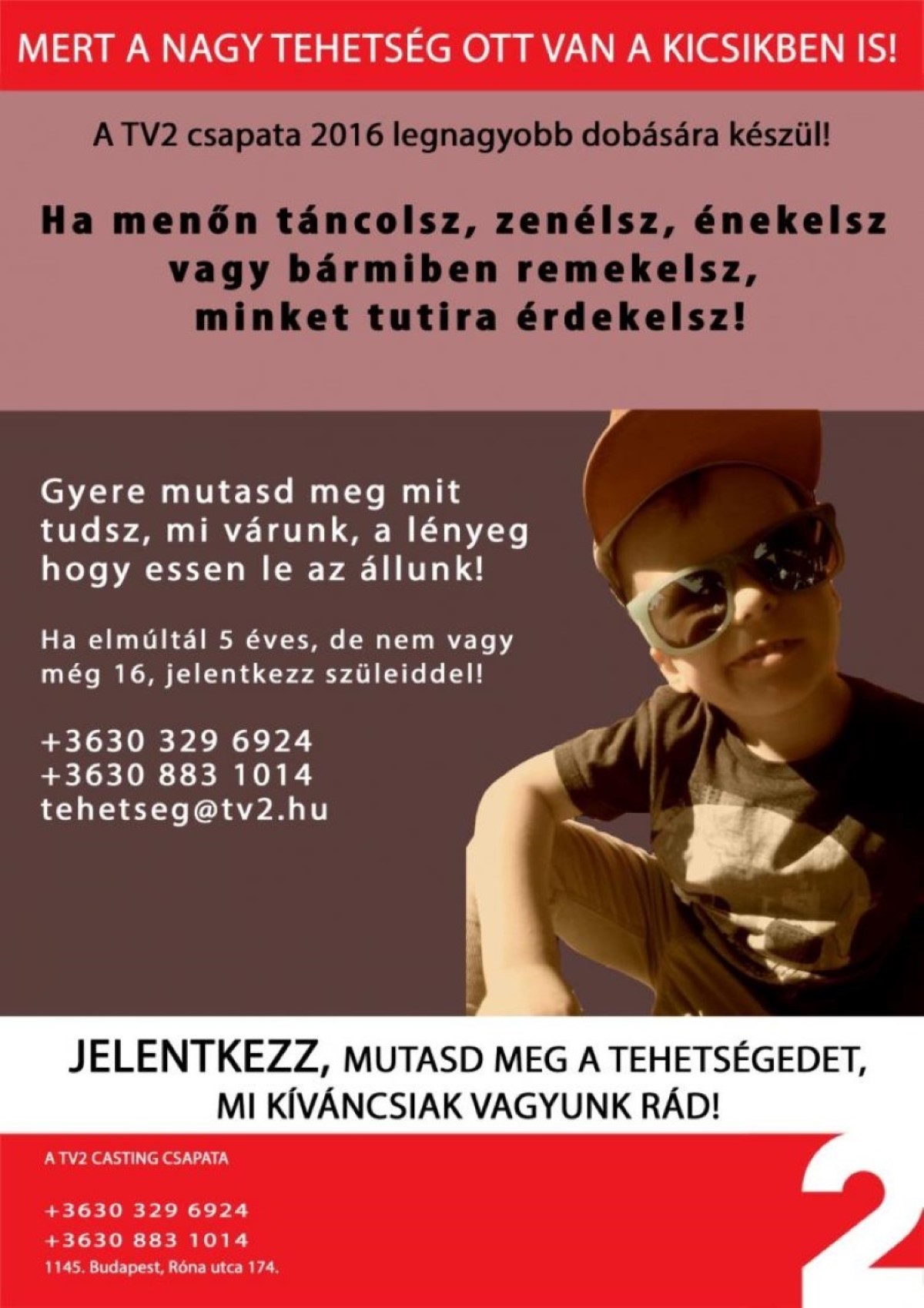 A tv2 új gyermek tehetségkutató műsort indít, 5-16 éves korosztályban
