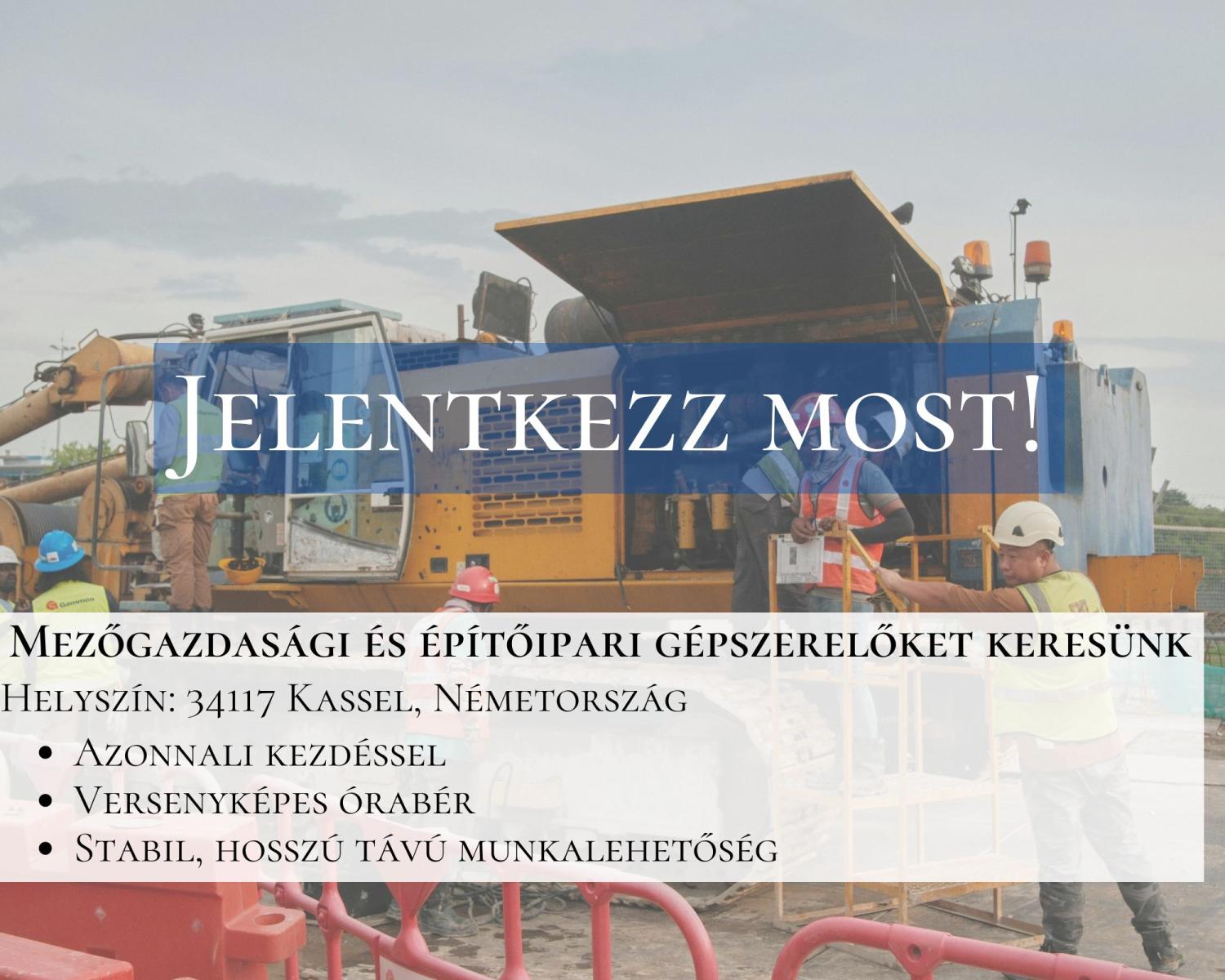 MEZŐGAZDASÁGI ÉS ÉPÍTŐIPARI GÉPSZERELŐKET KERESÜNK