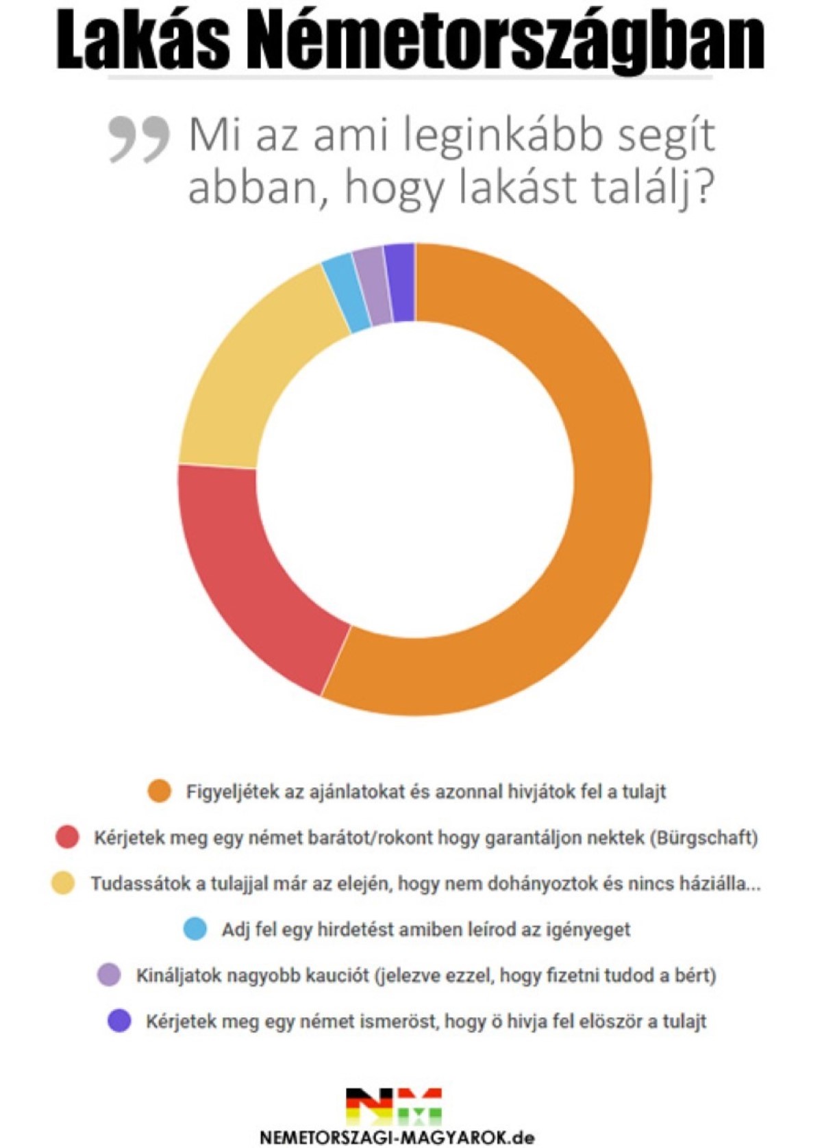 Németországban sok helyen könnyebb munkát találni mint lakást, ezért úgy gondoltuk, megkérdezzük tagjainkat a "Németországi Magyarok" Facebook csoportunkban, hogy milyen tippeket tudnak adni a lakáskeresőknek. A legjobb tippeket azoktól lehet kapni, akik sikerrel jártak, így, reményeink szerint az alábbi tippek sokak hasznára válhat.