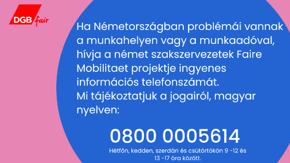 A weboldaluk, amelyen sok hasznos információt találsz a németországi munkavégzéssel kapcsolatban, magyar nyelven itt érhető el: www.fair-arbeiten.eu