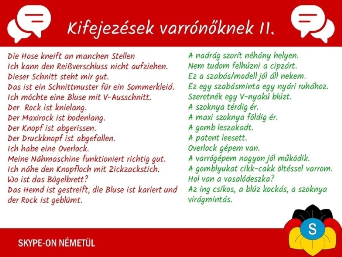 Német nyelvleckék- kifejezések varrónőknek 2. rész