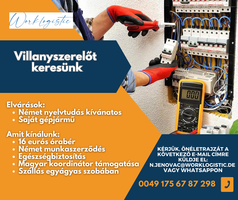Németország, épületek villanyszerelése (m/w/d), hosszú táv, folyamatos munkavégzés