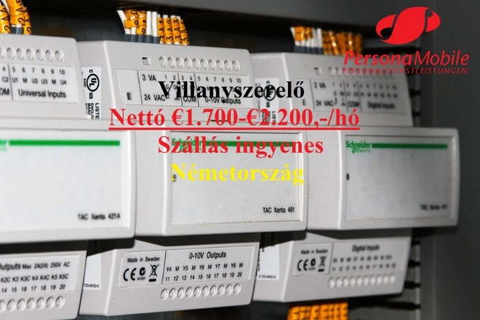 Hosszútávú németországi munkára keresünk épület-/ipari- ill. üzemi villanyszerelő szakembereket!