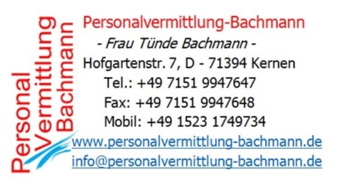 78183 Hüfingen-be keresek egy automechanikust, autok javitására és kerekek szerelésére azonnali kezdéssel. A német nyelvet kell tudni beszélni és irni (amenyire megy).A fizetés lenne NETTO 1.804,00€ a 3as adóosztállyal és 1.560,00€ az 1es adóosztállyal. Akit érdekel, kérem a német nyelvü önéletrajzokat erre az email cimre: info@personalvermittlung-bachmann.de