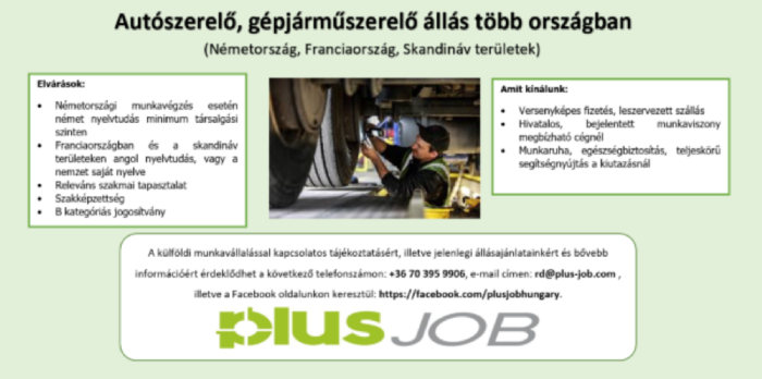 Olyan szakembereket keresünk nemzetközi szerelő műhely partnereink számára, akiknek van tapasztalata autó, vagy teherautó, vagy pótkocsi, vagy mezőgazdasági gép szerelésben, vagy karosszérialakatosként.