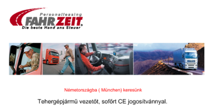 Jelentkezni motivációs levéllel, önéletrajzzal, jogosítványának másolatával, digitális tachograf kártya bemutatásával E-mailen (muenchen@fahr-zeit.de), keresztül lehetséges: