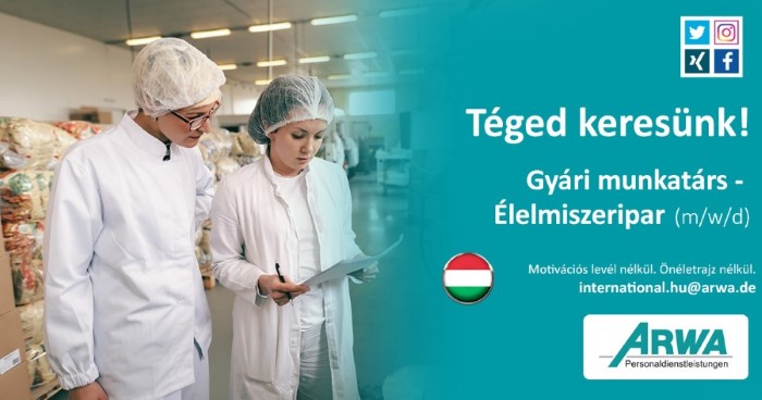 Jelentkezz most az alábbi pozíciónkra : Segéd Élelmiszeriparban