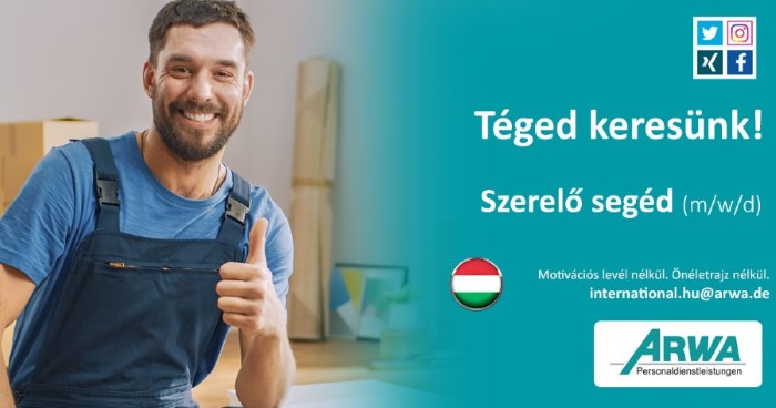 Az ARWA Personaldienstleistungen egy nagy múltú német munkaerő-kölcsönző cég. Közel 40 éves piaci tapasztalattal és 95 telephellyel Németország-szerte garantáljuk, hogy nálunk találsz elvárásaidnak megfelelő munkahelyet!